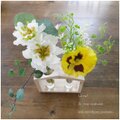 その花器にホワイト&イエローのビタミンカラーのお花を合わせました!