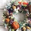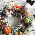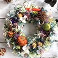 ハロウィンの雰囲気を感じさせながらも、過ぎても飾っていられる大人っぽい落ち着いた雰囲気のリースです。