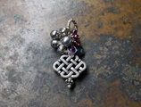 エンドレスノットとシルバー枠雫型アメジスト、インディゴブルーカイヤナイト、ガーネットとたわわな鈴のペンダントトップ