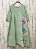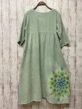 タイダイ染め ロングワンピース Hippies Dye最新作 千草色 幻想的な3連曼荼羅 HD14-58