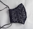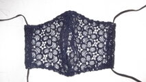 表地は厚手の紺のケミカルレースを使っています。刺繍部分は厚みがありますがレースなので息苦しくはありません。