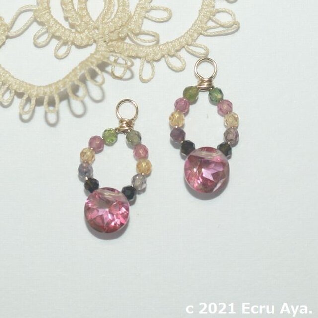 素材:宝石質ピンクトパーズAAA ラウンドファセットカット、宝石質トルマリンAAA 極小ラウンドカット、その他全て14kgf