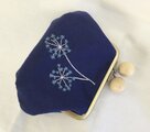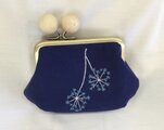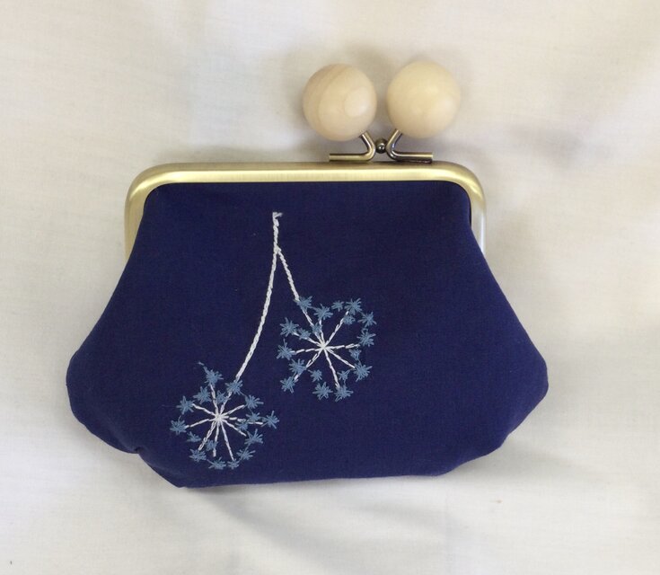 線香花火のような刺繍生地で作りました大きめ木玉ポーチです
