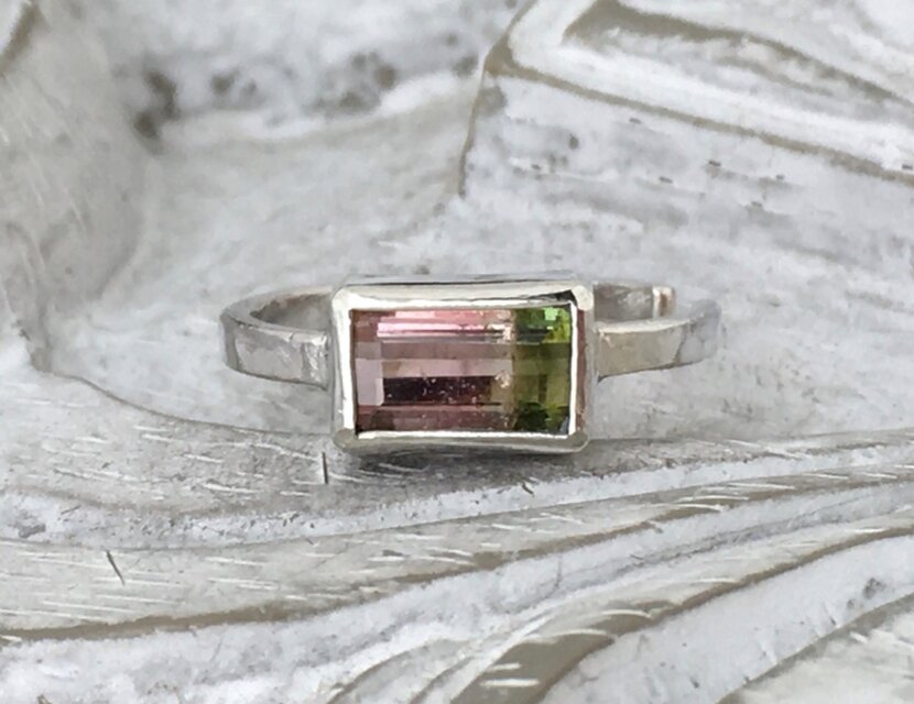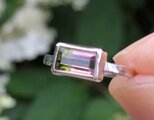 可愛らしいピンクとグリーンのバイカラーが美しいスクエアカットのトルマリン。