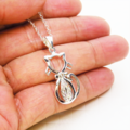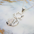 猫のシルエットモチーフにキュービック・ジルコニアを散りばめてキラキラと輝くペンダント・ネックレスです
