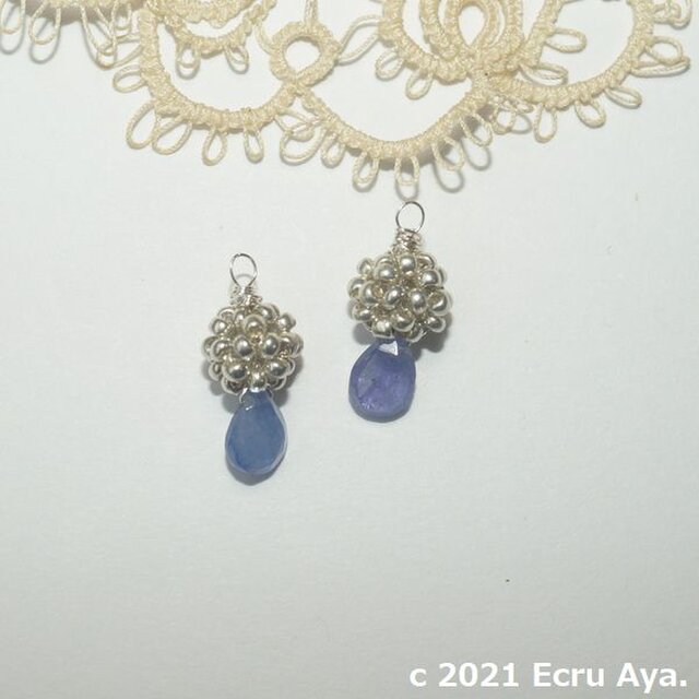 素材:宝石質タンザナイトAAA ペアシェイプブリオレットカット、シードビーズ、その他全てsv925