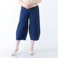 『 Tomo 』 コットン100% 手織り クロップド丈 インディゴ染め カジュアル カーブパンツ