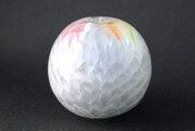 ガラスの中で繊細な花びらが100枚以上も描いてある花の、とんぼ玉です。