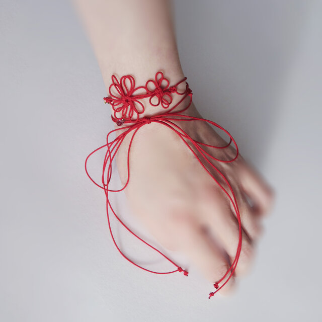 極細の紐で仕立てる華奢な飾り結びのブレスレット