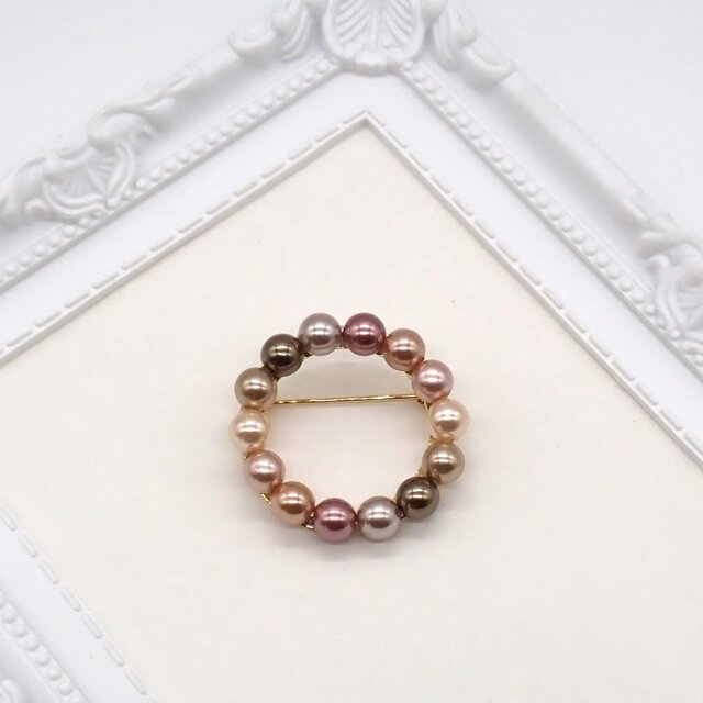 シックで華やかな色合いのアンティークカラーのパールのサークルブローチです。