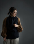 やわらかく華のある首元のシャーリングにフロントは使いやすいシンプルなデザイン。