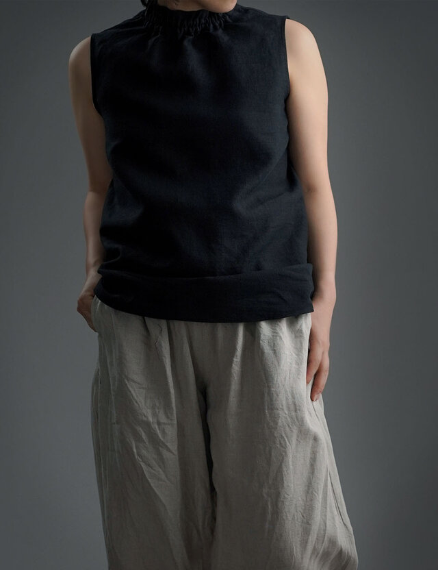 【Mサイズ】【wafu】雅亜麻 Linen シャリーング ネック インナーとしても/黒色 p014c-bck1-M