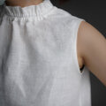 【Mサイズ】【wafu】雅亜麻 Linen シャーリング ネック インナーとしても/白色 p014c-wht1-M