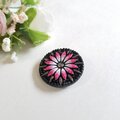 黒のベースにお花がデザインされたチェコガラスボタンです。
