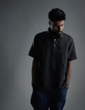 【Lサイズ】【wafu】Linen Polo Shirt ポロシャツ 超高密度リネン /黒色 t053a-bck1-L