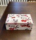 アンティークな花、さくらんぼが描かれているキャスキッドソンらしい、かわいいプリント生地を使って作った裁縫箱。