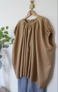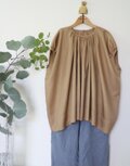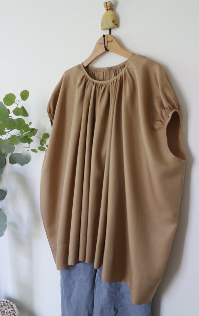 シルク混コットン薄地生地でノースリーブギャザーブラウスを作りました。