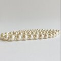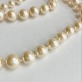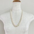 オールノットネックレスの特徴として、万が一糸が切れた場合にバラバラにならない点や、玉同士が密着していないので擦れあいにくく傷も付きにくい点・首回りにフィットしやすくなっている点等がございます。この仕様は特に海外で人気があり、比較的高品質アクセサリー類によくみられる仕様です。※こちらのパールは1990年代に、アメリカの百貨店向けに当工場にてパール塗装して輸出していた未使用のビンテージストックを使用しています。品質の状態も維持されており、剥がれや大きな目立った傷などもございません。ピンホールや小さい凹み等が稀にございますが、品質に問題は無く許容範囲とさせて頂いております。