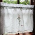 ホワイトコットン♪薔薇の刺繍カフェカーテン 55cm×38cm