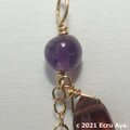 その下にガーネットのマーキスを下げ、通したチェーンの先にビアクォーツのペアシェイプを下げています。