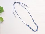 青いカイヤナイトをメインにした長さ調節のできるネックレスです。
