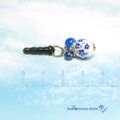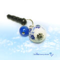 白地にブルーの花模様が描かれた陶器ビーズを主役にした、イヤホンジャックです。