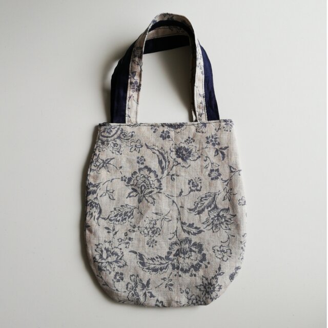 内側と持ち手は紺色のリネン(細番手の薄い生地です)です。