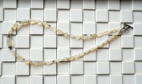 すべて石と石の間には、小さなゴールドかシルバーのビーズが挟まれていて、石と石がくっつかず、石そのものの形も美しく見えるようになっています。