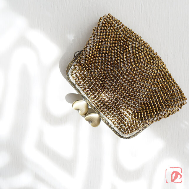 2mmのシードビーズをひとつぶづつ全面に編み込んだ、上質ながま口です。
