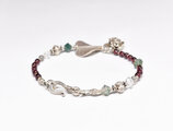 ボタニカルなカレンシルバーとパープルアンティークビーズ、3種類のストーンビーズののブレス