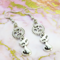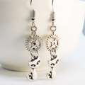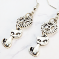 アンティークシルバー 猫と歯車モチーフを組み合わせたコンパクトで可愛いピアス スチームパンク風