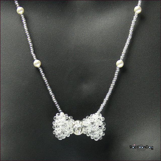 ビーズ,ビーズアクセサリー,ビーズアクセ,ビーズネックレス,ネックレス,クリスタル,パール,リボン,スワロフスキーパール,スワロフスキー