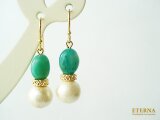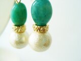 深いブルーグリーンが印象的なロシアンアマゾナイトとコットンパールをマットゴールドの繊細なロンデルで組み合わせました。