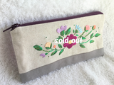 少し厚みのあるリネンの布地にお花の刺繍を施したペンケースです。
