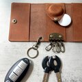 AirTag・カード・スマートキーも一緒に 姫路レザーマルチキーケース ねこ パスケースプレゼントペア本革婚式 エアタグ