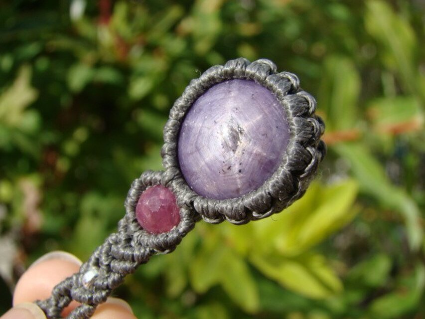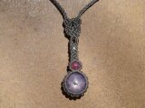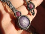 天然石(パワーストーン)インド産のスタールビーとルビーをロウビキ紐を使ってマクラメ編みしたネックレス(ペンダント)です。