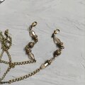 きらめくライトブラウンのビーズとアンティーク調のチェーンが織りなす、どこか懐かしい雰囲気を持つ作品です。繊細なビーズと落ち着いた色合いが、大人の女性にぴったりな上品さを演出します。