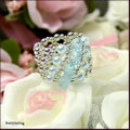 ビーズ,リング,コスチュームジュエリー,指のほっそり効果,パール,幅広,アクアマリン,ビーズアクセサリー