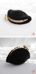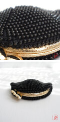 ばあば作♡♡総ガラスビーズのがま口(lady black・1510)