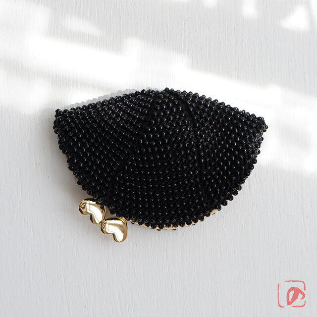ツヤのある黒い3mmガラスビーズを全面に編み込みました。