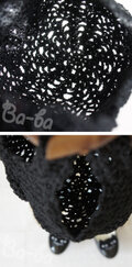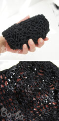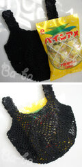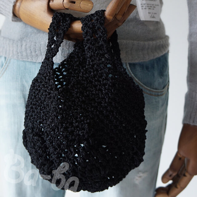 光沢のある黒のサマーヤーンを編み込んで小さな手さげ袋にしました。。