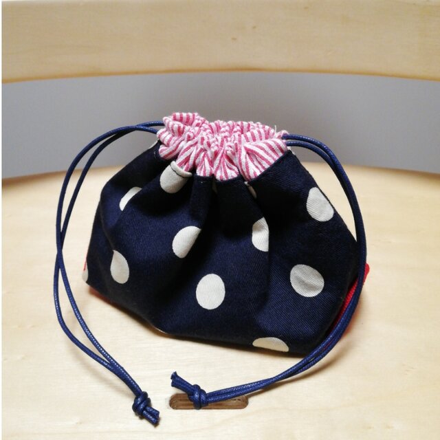 本体、中布、マチの柄合わせが楽しいサイズ小さめの巾着ポーチです。