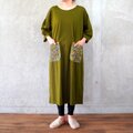 《おうち時間》クロシェポケット ワンマイルウェア チュニック ワンピース カーキ