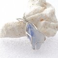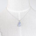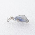 細かな針状のデュモルチェライトを内包した水晶の原石を磨いて、銀線でペンダントに仕上げました。