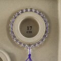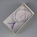 クリアな水晶に紫のゴム紐がアクセントの数珠ブレスレットです。