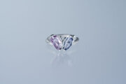 グレイッシュな薄紫とブルーが上品なサファイアを、蝶々に見立てました。