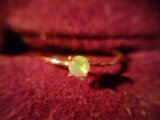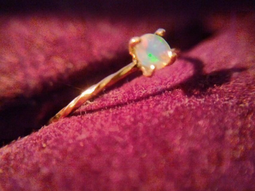 キラキラ輝く18金の華奢なリングに小さいながら神秘的な遊色をはなつ
