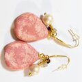 雫型のオリジナルの樹脂粘土パーツにガラスビーズを合わせて可愛いピアスに仕上げました。
