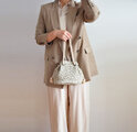 シンプルにベージュやエクリュなどトレンドのワントーンでまとめるコーデのアクセントアイテムにもピッタリです。