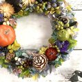 オレンジのカボチャに黒のワイルドベリー、そして青リンゴや木の実を合わせたハロウィンリースです。